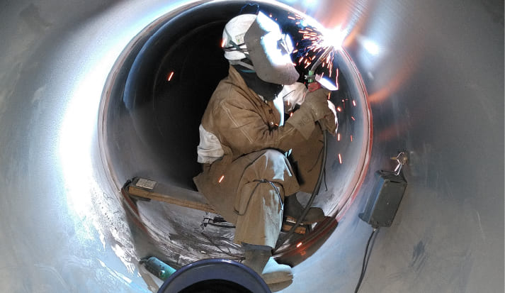 半世紀にわたる豊富な実績を持つ鉄鋼業界のトップメーカーの主要な一次下請け業者として 私たちは日本のライフラインを支える大径管の施工・管理をしています 高品質な溶接施工を提供する熟練した職人とそれを支える優秀なスタッフのチームが弊社の強みです